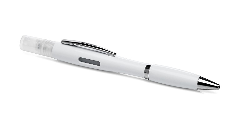 • Bolígrafo con válvula atomizadora recargable con tapa de protección