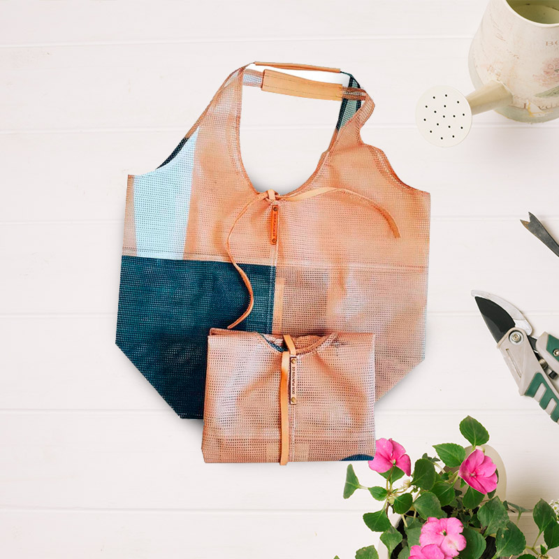 • Materiales:descarte de lona publicitaria + cuero curtido vegetal.