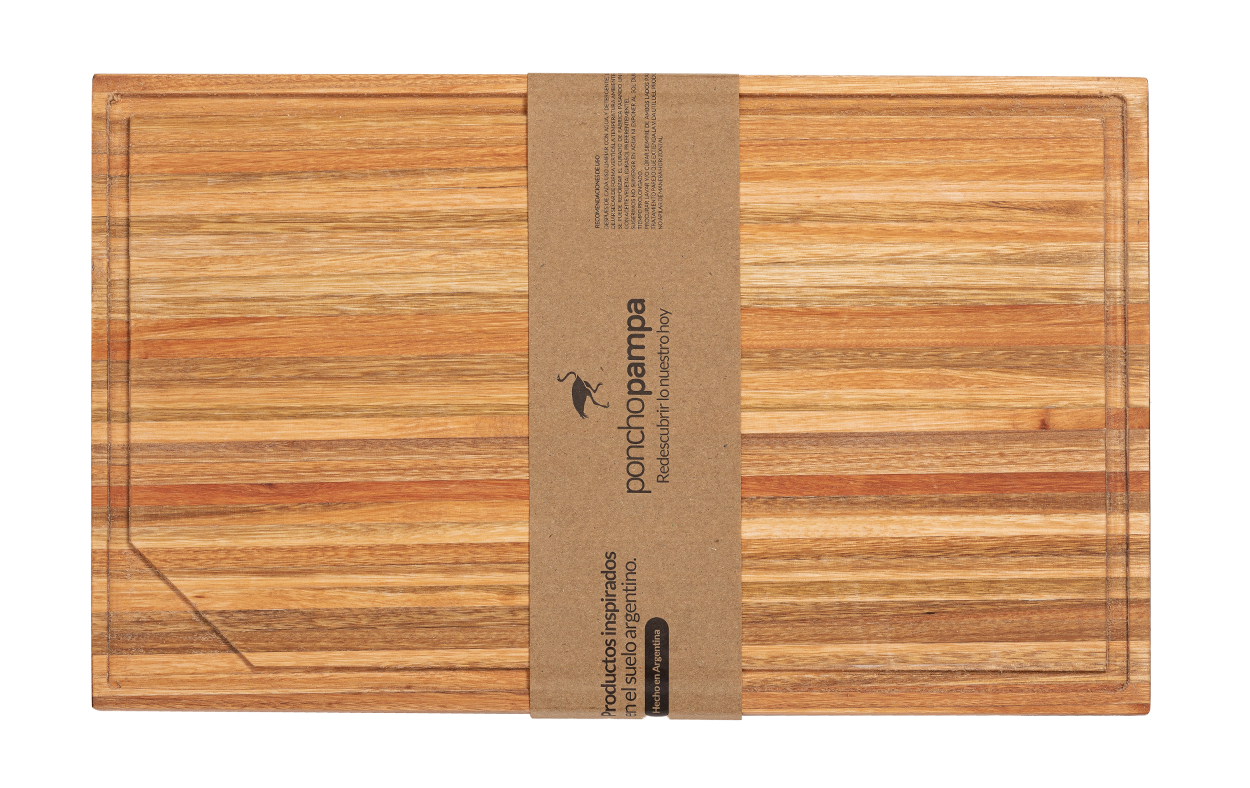 • Tabla de asado elaborada en madera de eucalipto reforestado que se caracteriza por su gran durabilidad y baja porosidad.