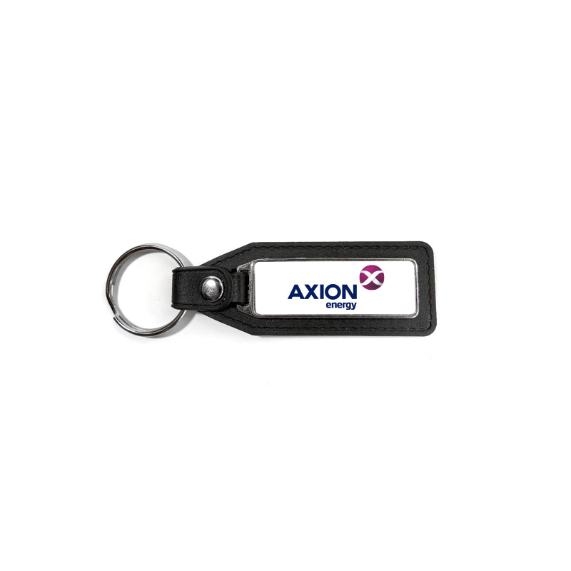 •Llavero simil cuero con logo en resina full color. •Medidas: 1.6 x 4.8cm.